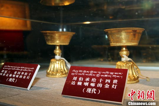 西藏展出刘伯承给十四世达赖喇嘛的金灯