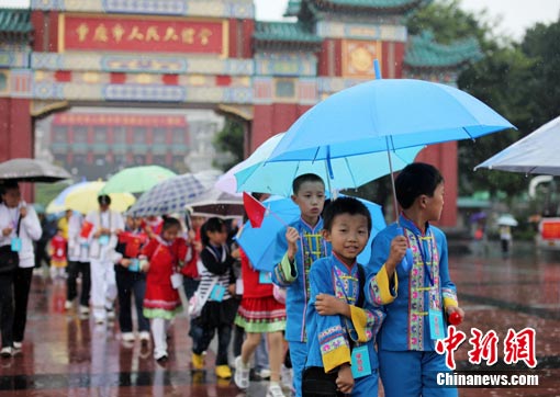 中新网重庆10月1日电(连肖)10月1日,重庆彭水苗族土家族自治县的28名农村留守儿童第一次到重庆主城游玩。他们在博物馆、动物园中度过了国庆节第一天。