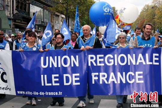 法国的工会和左派反对党2日再次组织全国性抗议示威游行,反对政府的退休制度改革计划,这是一个月内法国第3次全国性的抗议示威活动。图为巴黎街头的抗议游行。中新社发 吴卫中 摄