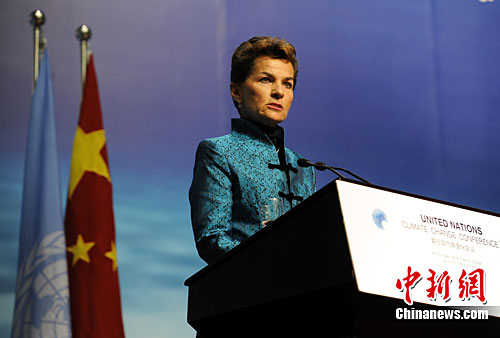 图为《联合国气候变化框架公约》秘书处执行秘书克里斯蒂安娜·菲格雷斯在开幕式上致辞。中新社记者 刘震 摄