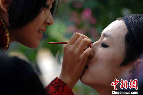 10月6日,享受国庆长假时光的北京青年,来到圆明园遗址公园,穿上传统民族服装、描眉化妆,拍摄剧情照片留影。