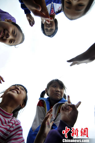 国庆长假期间,甘肃舟曲县城的孩子们快乐地做游戏。今年8月8日,舟曲遭遇特大山洪泥石流地质灾害,当地教育部门采取合校教学和异地就读的方式,让舟曲学生如期开学。中新社发 杨艳敏 摄