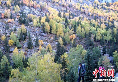 今年十一黄金周期间,位于新疆北部富蕴县城东北48公里处的可可托海国家地质公园景区内,到处呈现着醉人的秋景,吸引了来自全国各地的游客驻足观赏。