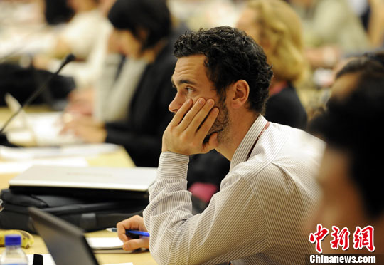 10月8日,联合国气候变化国际谈判天津会议继续举行。本次会议是年底墨西哥坎昆联合国气候变化大会前的最后一次谈判会议,参会各方都想尽可能的在天津谈判会议上争取到对本国有利的协议,会场内每一个气候谈判代表的表情都展现出各国利益博弈与协同的艰难进程。中新社发 刘震 摄
