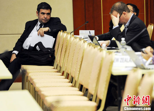本次会议是年底墨西哥坎昆联合国气候变化大会前的最后一次谈判会议,参会各方都想尽可能的在天津谈判会议上争取到对本国有利的协议,会场内每一个气候谈判代表的表情都展现出各国利益博弈与协同的艰难进程。中新社发 刘震 摄