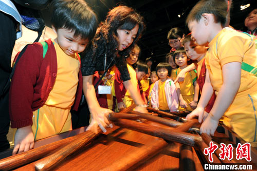 10月8日,“达尔文的创意奇想”展览在香港科学馆开幕。参观展览的将军澳幼稚园小朋友在工作人员指导下,在展出现场成功建成达尔文构想的“交叉式拱桥”。 该展将展出至明年2月9日。