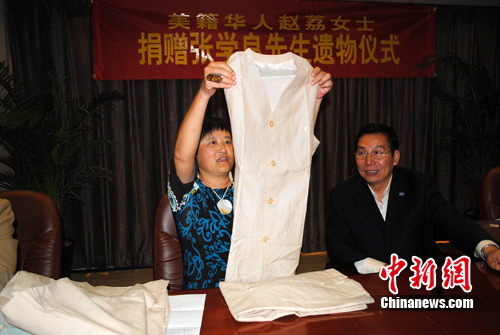 10月8日晚,美籍华人、张学良夫人赵一荻的侄孙女赵荔向西安事变纪念馆捐赠了7件张学良先生晚年的遗物。有关人士称,目前该馆共有等级文物300多件,其中一级文物22件。这是赵荔女士第二次向该馆捐赠张学良先生晚年遗物。