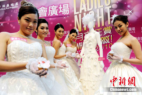 10月10日,一些新人选择结婚,取其“十全十美”的寓意,香港有商场特意当天起展出六呎高的婚纱造型蛋糕,为未婚女士带来可觅得如意郎君的祝福。