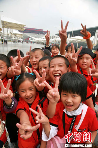 在世博会进入倒计时之时,上海市金山区民办水库小学和金安小学百余名来自安徽、贵州、四川等地的农民工家庭的孩子,在区慈善基金会和新加坡星展银行的工作人员全程陪同下,以“游世博、展爱心、增知识”为主题,来到世博园区,通过亲身体验,了解世界,开阔眼界,感受社会大家庭温暖,与城里孩子一样,共享世博盛会。