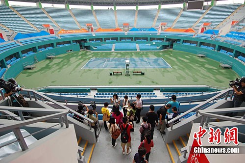 广州亚运会即将进入30天倒计时,这一盛会备受中外瞩目。10月11日上午,一批中外媒体集体采访新建成的亚运会网球馆。中新社记者 柯小军 摄