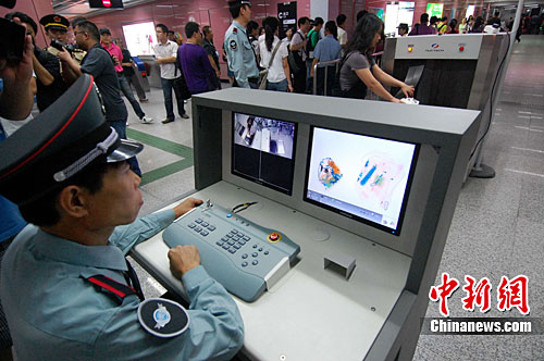 为了保障亚运期间公共交通安全,广州地铁公司购置的327台X光安检机已经到位,开始对进站乘客进行安检。中新社记者 柯小军 摄
