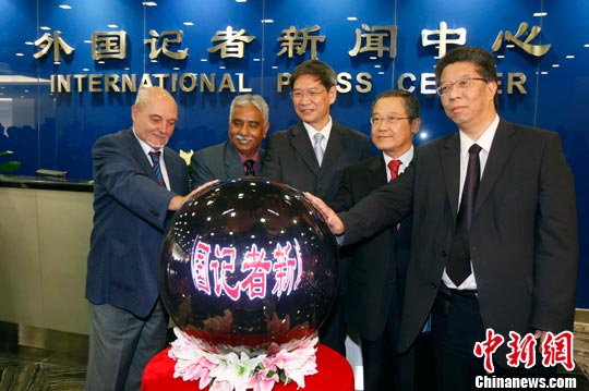 10月12日,全新的中国外交部外国记者新闻中心(IPC)在外交部南楼揭幕,同时新的新闻发布厅“蓝厅”也首次亮相。发布厅和外国记者新闻中心相邻结合,打造出全方位的“外国记者之家”和权威高效的外交部信息发布中心。中国外交部副部长张志军(中)等为新闻中心揭幕。中新社发 张宇 摄