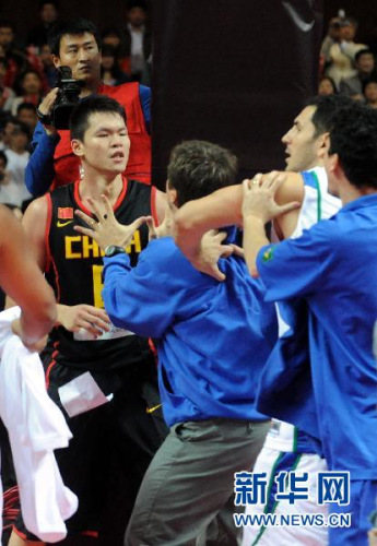 男篮亚运热身赛 中国与巴西爆发群殴 (2)
