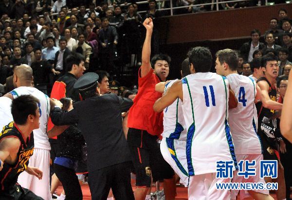 男篮亚运热身赛 中国与巴西爆发群殴 (6)