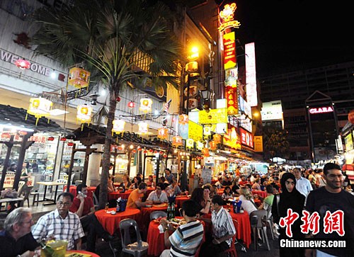 10月12日夜晚,马来西亚吉隆坡唐人街——茨厂街多姿多彩的街道上,许多商店、餐馆琳琅满目引人入胜;星罗棋布的中餐馆,提供多种乡土地道美食,吸引众多外国游客前来品尝美食。中新社记者 刘可耕 摄