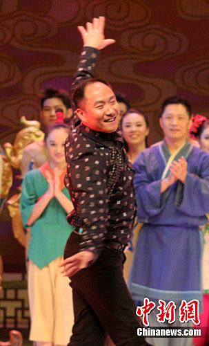 10月12日晚,爱情经典作品--大型原创舞剧《红楼梦》在多伦多市索尼剧院中心上演,中国舞蹈界奇才、该剧编导赵明演出后即兴跳了一段舞蹈以庆演出成功。中新社发 赖海隆 摄