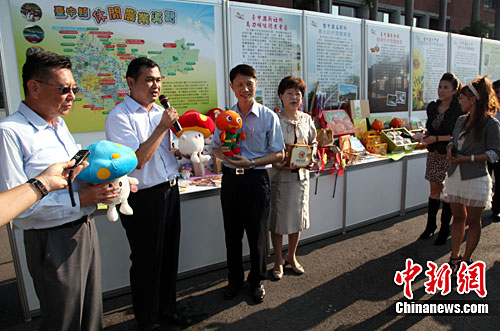 图为台中县市大山城地区周边6乡镇在记者会上联合展示休闲农产品。中新社记者 陈立宇 摄