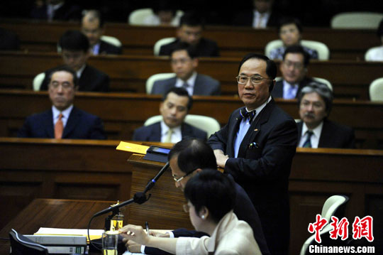 香港特区行政长官曾荫权14日到立法会出席答问大会,回答议员就施政报告提出的质询。 中新社发 谭达明 摄