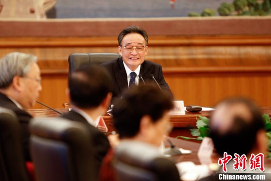 10月14日,第十一届全国人大常委会第五十一次委员长会议在北京人民大会堂举行,全国人大常委会委员长吴邦国主持会议。 中新社发 盛佳鹏 摄