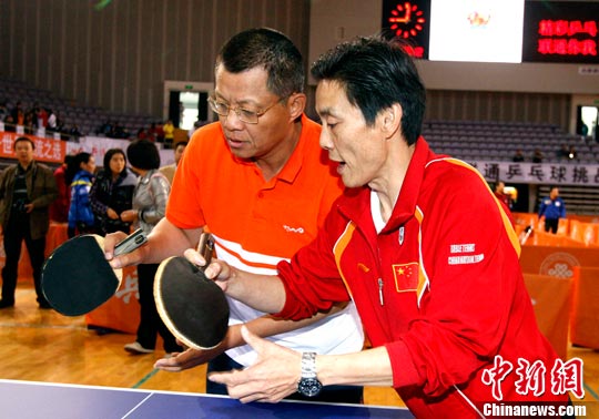 10月16日,“乒临城下”首届中国联通乒乓球挑战赛全国总决赛在北京举行,中国乒协副主席陆元盛出席并现场指导选手技艺。本次大赛共4万余名联通用户报名,比赛站点300余个,积极推动了群众性体育运动,提高公众对健康生活的关注。 中新社发 张宇 摄