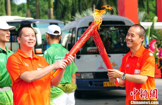 组图:第16届亚运火炬在深圳站传递