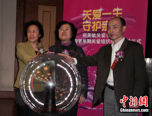 中华国际医学交流基金会理事长宗淑杰(中)、全国妇联机关副局长侯凤兰(左)和首都青年记者协会副秘书长史斌(右)10月18日共同点亮水晶球,宣布中国更年期关爱组织网正式开通。今天是“世界更年期关怀日”。为关注围绝经期女性健康、普及更年期保健知识、增强女性保健意识,呼吁全社会重视更年期女性身心健康, 中华国际医学交流基金会与全国妇联、中华医学会等共同推出“中国更年期关爱组织网站()”。中新社记者 曾利明 摄