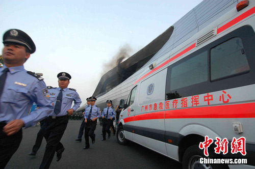18日下午五点三十分,广州亚运城举行了一场8000多人参演的大型综合应急演练,检验广州市涉亚突发事件应急处理能力,进一步完善亚运城和属地保障应急预案,有效防范和应对各类涉亚突发事件,确保顺利完成比赛任务。