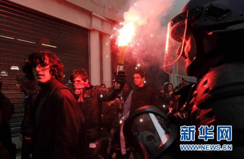 10月19日,法国全国范围内的反对退休制度改革大罢工已经进入第6天,数千名中学生在法国多座城市也举行了游行示威活动。 图为一些高中生在法国里昂参加反对退休制度改革罢工。