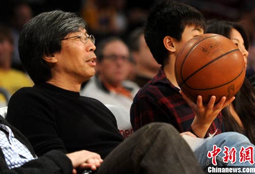 洛杉矶湖人队宣布,“魔术师”约翰逊已将其拥有的湖人队股票卖出,接手的是美国华裔富豪陈颂雄。陈颂雄以发明先进抗癌药闻名,据报道,其个人资产高达71亿美元,名列美国华裔首富,同时他也是湖人队的铁杆球迷,拥有湖人队季票长达25年。图为上赛季陈颂雄与家人一起观看湖人队比赛。