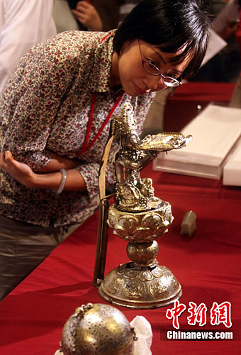 法门寺珍宝“捧真身菩萨”台北首度公开亮相。中新社记者 王健 摄