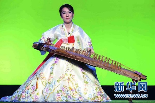 10月20日,平壤艺术团演员表演伽倻琴独奏。李紫恒 摄 图片来源:新华网