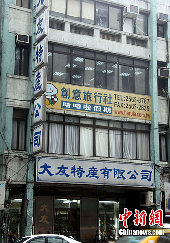 18名来自广东的观光客人,在因当地空前暴雨而造成大面积塌方的台湾苏花公路一带与外界失去联络。图为承担此次游线的创意旅行社所在的办公楼。中新社记者 王健 摄