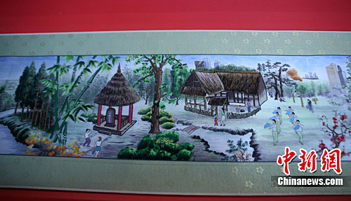 图为蜀绣《锦绣家园图》局部。中新社发 刘忠俊 摄