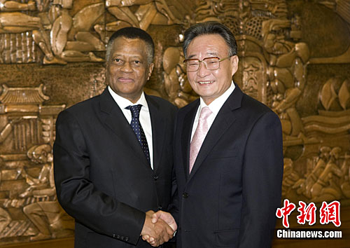 10月22日下午,中国全国人大常委会委员长吴邦国在北京人民大会堂与南非国民议会议长马克斯·西苏鲁举行会谈。中新社记者 盛佳鹏 摄