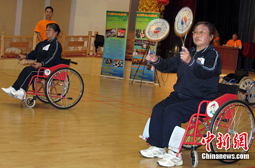 10月23日,第二届必和必拓杯残疾人太极柔力球全国邀请赛在北京开赛,来自全国十五支团队参加角逐,整个赛事场面热烈,精彩纷呈。此次邀请赛的主题为“你行 我行 大家同行”。中新社记者 任海霞 摄