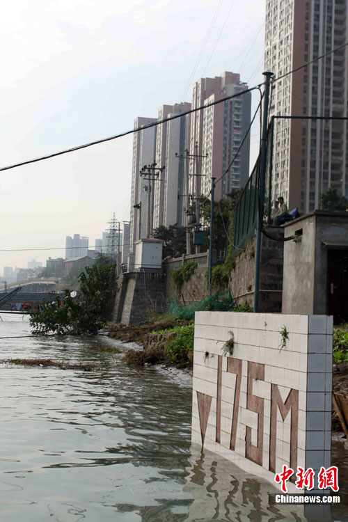 24日上午,长江三峡库区中段万州航道处码头的水位刻度碑175米红线被江水淹没,该段水位较大坝的提前突破175米蓄水高程。专家解释,主要是因为三峡是一座长度约660公里狭长的水库,受两岸山体的阻滞,库区上下游会形成一定的水位落差。