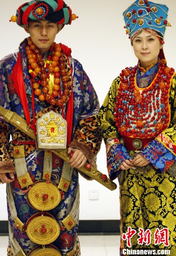 图为中国民族服饰展演团展示藏族服饰。中新社发 钱兴强 摄