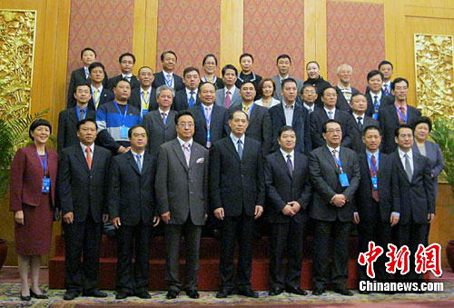 10月25日晚间,湖南省副省长郭开朗(前左5)、国务院侨办副主任任启亮(前左6)与前来此间参加“第四届侨领侨商湖南投资合作周”的部分代表合影留恋。此次投资合作周由湖南省人民政府和国务院侨办共同主办,以“聚侨兴湘,合作共赢”为主题,旨在为华侨华人来湘创业发展搭建平台,实现合作共赢。前来参加的侨领侨商和华侨华人共有169名,其中120名来自美国、英国、法国、西班牙、澳大利亚、泰国、新加坡、马来西亚等12个国家和香港、澳门、台湾地区,49名来自成功落户广东、上海、山东等地的侨团组织。