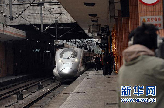 10月26日9时,首发的G5002次国产“和谐号”CRH380A新一代高速动车组列车从浙江杭州火车站始发。黄宗治 摄