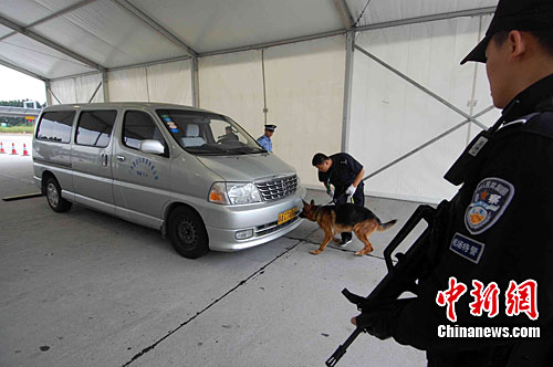 10月26日,广州白云机场启动亚运特别安保措施。图为进入机场的车辆接受安保抽查。中新社记者 柯小军 摄