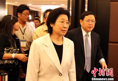 10月27日,大陆海协会副秘书长张胜林等中午抵达台湾,了解在台湾苏花公路失踪的20名大陆同胞的搜救进展情况。图为张胜林等傍晚在海基会人员陪同下到台北县福荣大饭店看望失踪的大陆游客家属。