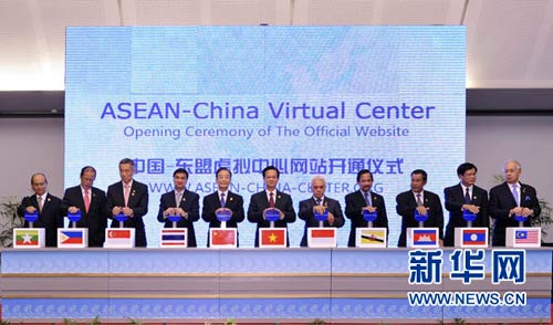 10月29日,中国国务院总理温家宝在河内与东盟领导人共同出席中国—东盟虚拟中心网站开通仪式。 黄敬文 摄 图片来源:新华网
