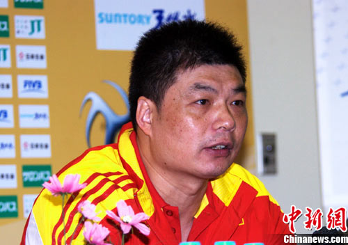 图为赛后新闻发布会上的主教练俞觉敏。中新社发 孙冉 摄