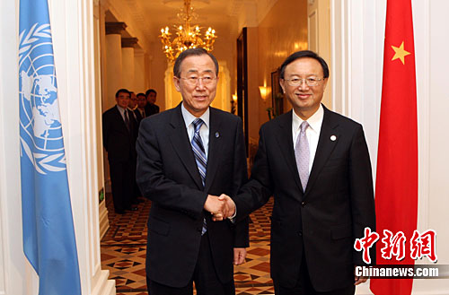 10月30日晚,中国外交部部长杨洁篪在上海会见联合国秘书长潘基文。中新社记者 汤彦俊 摄