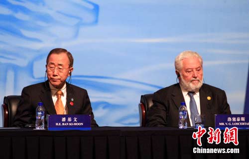 10月31日,中国2010年上海世博会高峰论坛在世博中心举行。高峰论坛的主题为“城市创新与可持续发展”。联合国秘书长潘基文(左)、国际展览局秘书长洛塞泰斯出席开幕式。