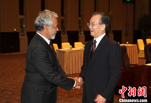 10月31日,中国国务院总理温家宝在上海西郊宾馆会见东帝汶总理夏纳纳。