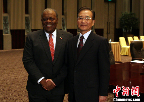 10月31日,中国国务院总理温家宝在上海西郊宾馆会见巴哈马总理英格拉哈姆。中新社记者 汤彦俊 摄
