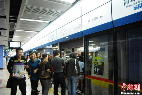从11月1日起至亚残运会结束,在逢工作日里广州市民和游客都可免费搭乘地铁、公共汽车、轮渡等交通工具。这是亚运会和亚残运会期间广州市政府送给市民的一份礼物。中新社发 梁永强 摄