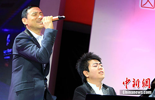 11月1日晚,“歌神”张学友与“钢琴王子”郎朗在上海参加可口可乐与普莱尔基金会以及中国预防性病艾滋病基金会举办的慈善拍卖晚宴,并首次跨界合作一曲《爱是永恒》。当晚,张学友百张巡演门票以300万成交价,创现场拍品之冠。中新社记者 潘索菲 摄