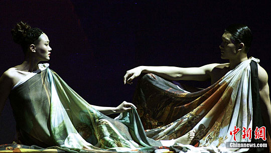 11月1日晚,为期9天的中国国际时装周2010年春夏系列发布在北京落下帷幕,在颁奖盛典上举行“米皇含蓄的奢华时装秀”。“米皇”以羊绒时装为产品主线,以尊贵的品质、简约的设计、精致的细节,传导出“含蓄的奢华”之品牌内涵,华贵但不张扬,充满从容、内敛、自信的精神气度,深受成熟精英人士青睐。多彩“米皇”,致力于打造“时尚羊绒顶级品牌”,携手中国服装界最高奖金顶奖得主祁刚,以中世纪法国宫廷艺术风情作为创作灵感,再续奢美传奇,高调展示高贵华丽的宫廷之美。图为模特展示“米皇含蓄的奢华时装秀”作品。中新社记者 钱兴强 摄